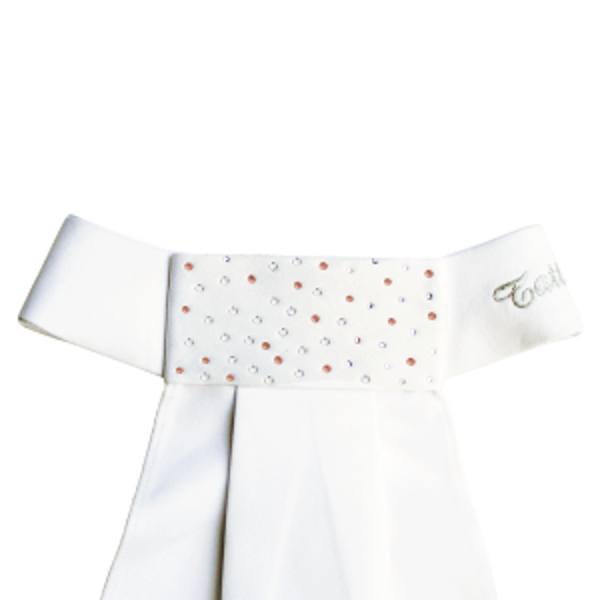 En tissu satin, avec pavé de cristaux or rose et blancs, fermeture auto-agrippante et écriture Tattini en silicone lurex.