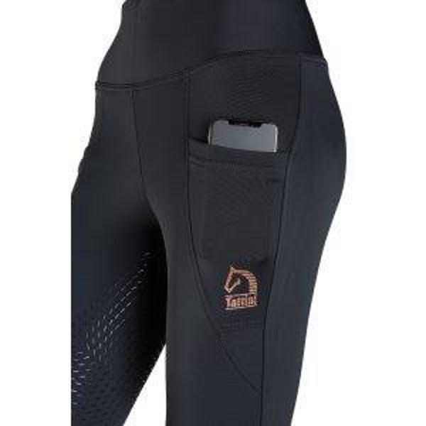 Tissu technique extensible très confortable avec ceinture haute et empiècement en maille à la cheville. Poignée antidérapante en silicone. Équipé de poches pour téléphone portable.