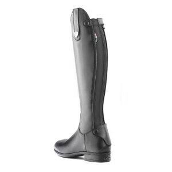 En peau de veau lisse sans lacets avec fermeture éclair arrière, avec technologie Close Contact grâce à l’insert CloseTEX à l’intérieur de la tige. Design personnalisable avec bracelets interchangeables. Serrure de curseur optimale avec fermeture éclair ykk, couvre zip en CloseTEX et arrêt de zip en plexi. Semelle plantaire remodelée avec semelle intrercalaire anatomique épaissie, antibactérienne et amovible. Semelle en caoutchouc avec système de ventilation AirBoost et AntiShock. Empeigne en cuir naturel souple et enveloppant. Bande élastique arrière pour une adhérence parfaite. Doublure en cuir grand teint naturelle. Les bottes de la série Close Contact, grâce à la technologie et au design 100% made in Italy, sont les premières au monde à utiliser le CloseTEX (Close Contact Textile), qui garantit un contact maximal avec le cheval, augmentant ainsi les performances des cavaliers et des cavalières. L’insert CloseTEX sur le côté intérieur de la tige donne à la botte une résistance à l’abrasion et à une adhérence élevée et en même temps la souplesse et la durabilité. Les volumes et les proportions de la semelle et de la tige ont été recalculés pour augmenter le confort et optimiser l’ajustement.