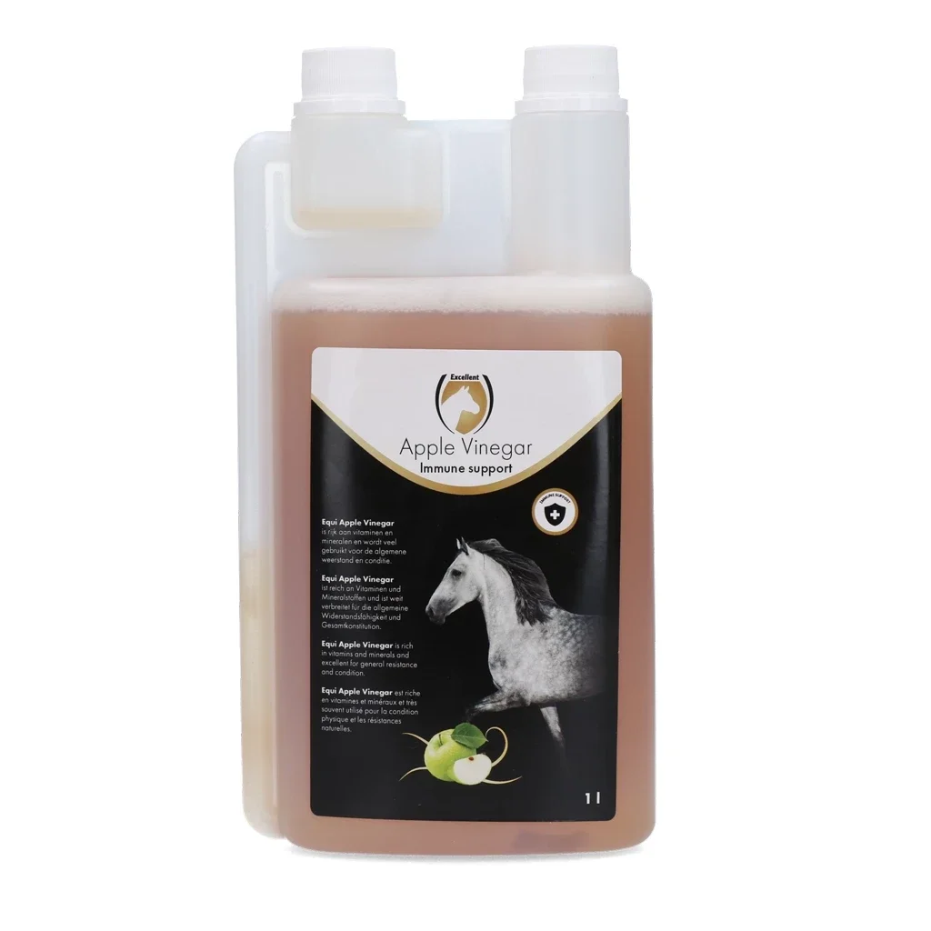Vinaigre de pomme pur pour chevaux, issu de fermentation naturelle. Stimule la résistance, soutient la condition physique et apporte des nutriments essentiels.