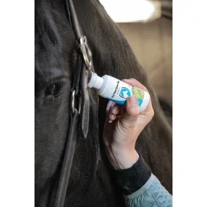 Mélange équilibré d’huiles essentielles qui neutralise les odeurs naturelles de transpiration et prend soin de la peau de votre cheval.