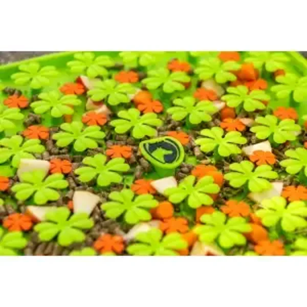 Le tapis Excellent Chevaux est conçu pour mettre les chevaux et les poneys au défi ! Ce tapis stimule le comportement naturel de recherche de nourriture des chevaux, car ils doivent faire un effort pour manger toutes les friandises qui se trouvent sur le tapis. Idéal pour lutter contre l'ennui ou récompenser les chevaux de manière ludique. Le tapis est fabriqué en silicone doux et convient donc également aux nez sensibles des chevaux.
