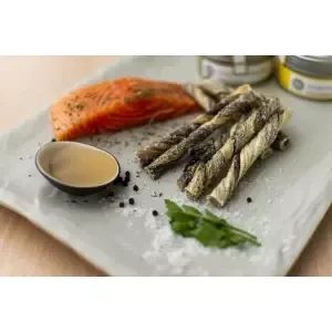Les snacks à mâcher Braaaf Seafood sont élaborés uniquement à partir de saumon sauvage d’Alaska, séché à l’air pour préserver toutes ses valeurs nutritionnelles. Grâce à des contrôles quotidiens stricts, la marque garantit une qualité et une hygiène irréprochables.